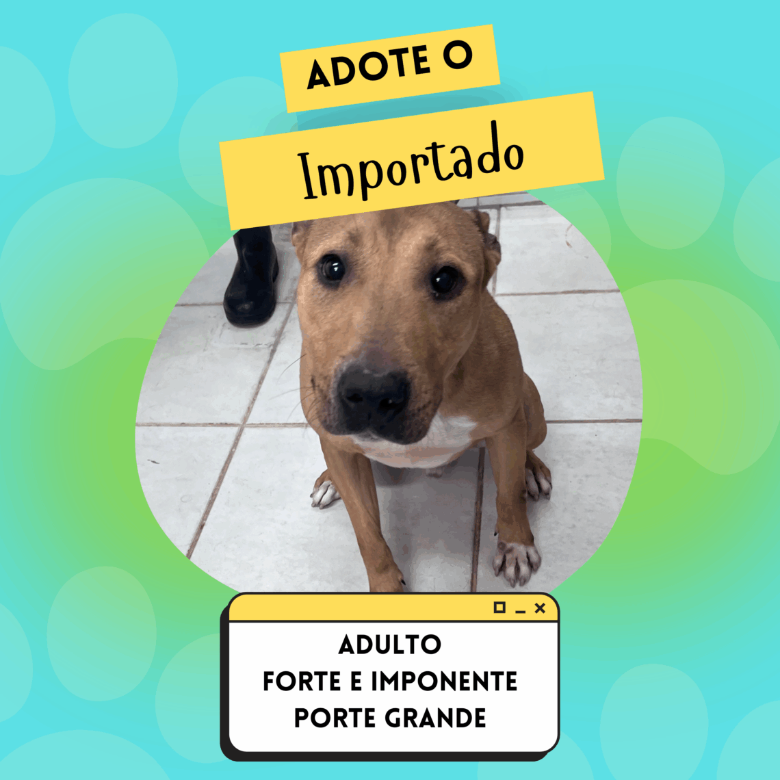 Adulto, Arisco, Canino, Macho, Para Adoção, Pelo curto, Porte médio 🐾 Importado 🐾 Todos os animais da GCZ são castrados, vacinados e vermifugados. Muito Prazer, eu sou o Importado! Venha até a Gerência de Controle de Zoonoses me conhecer! Nome Importado Prontuário 529/24 Raça SRD (parecido com bull terrier) Espécie Canina Sexo Macho Cor Caramelo Pelagem Média Porte Médio (25,0 kg) Idade Adulto Outras informações Arisco, desconfiado, não gosta de coleiras. Mais fotos: Gostou de mim? Endereço Rua Igarapava, 239 – Bairro Valparaíso – Santo André, SP Horário Segunda—sexta: 8h–17h anterior 🐾 Narizinho 🐾 mais recente 🐾 Átila 🐾 Você pode gostar 🐾 Duda 🐾 2 de setembro de 2019 🐾 Meninão 🐾 14 de março de 2022 🐾 Lobinho 🐾 2 de setembro de 2019