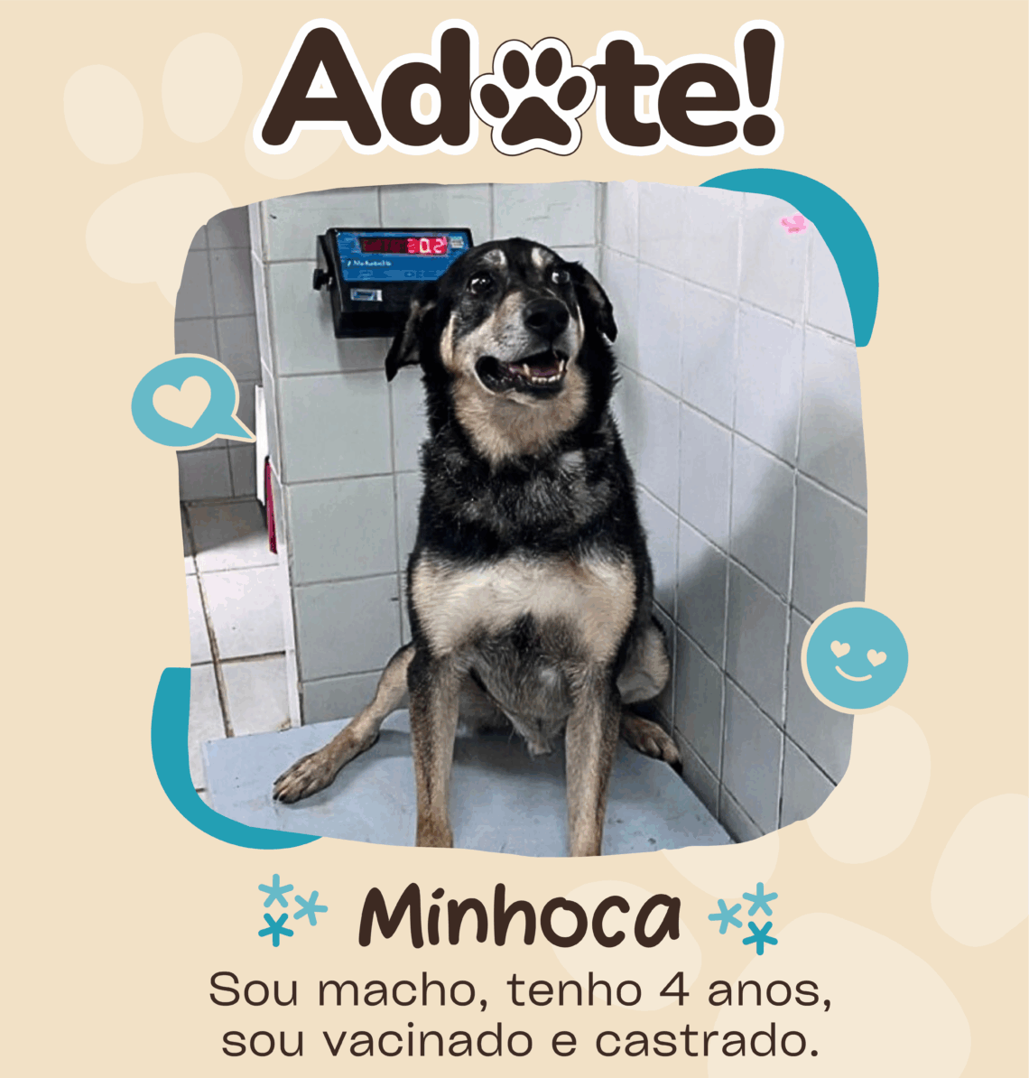 Adulto, Arisco, Canino, Macho, Para Adoção, Pelo curto, Porte grande 🐾 Minhoca 🐾 Todos os animais da GCZ são castrados, vacinados e vermifugados. Muito Prazer, eu sou o Minhoca! Venha até a Gerência de Controle de Zoonoses me conhecer! Nome Minhoca Prontuário 518/24 Raça SRD Espécie Canina Sexo Macho Cor Tricolor (Bege. preto e branco) Pelagem Média Porte Médio (30,3 kg) Idade Adulto Outras informações Arisco, forte, não gosta de coleiras. Mais fotos: Gostou de mim? Endereço Rua Igarapava, 239 – Bairro Valparaíso – Santo André, SP Horário Segunda—sexta: 8h–17h anterior 🐾 Bia 🐾 mais recente 🐾 Pietra 🐾 Você pode gostar 🐾 Átila 🐾 17 de fevereiro de 2025 🐾 Rico 🐾 17 de fevereiro de 2025 🐾 Fava 🐾 3 de setembro de 2019