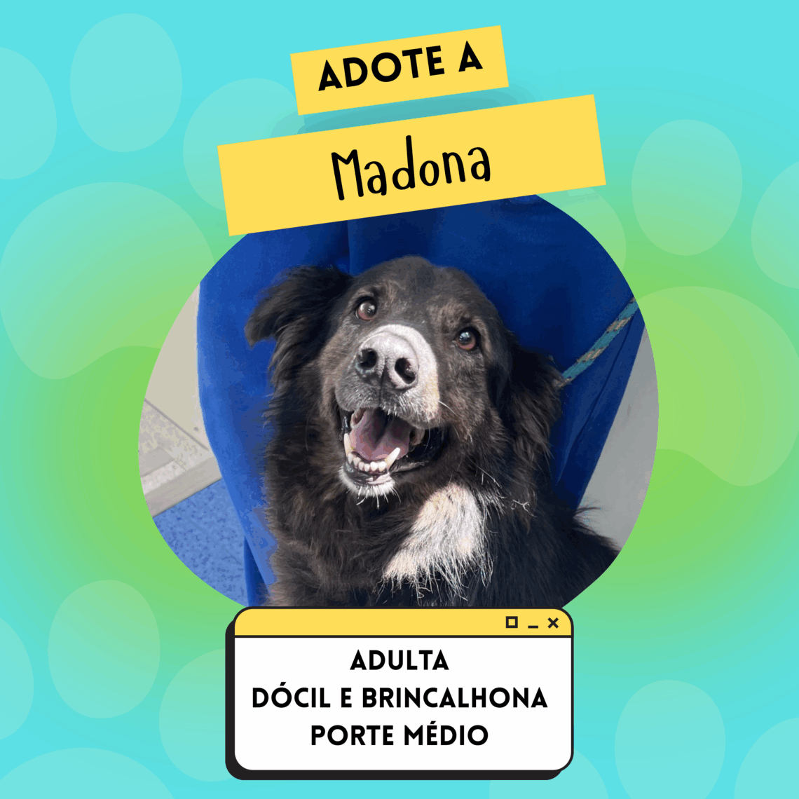 Adulto, Canino, Dócil, Fêmea, Para Adoção, Pelo longo, Porte médio, Sem categoria, Você pode gostar 🐾 Madona🐾 Todos os animais da GCZ são castrados, vacinados e vermifugados. Muito Prazer, eu sou a Madona! Venha até a Gerência de Controle de Zoonoses me conhecer! Nome Madona Prontuário 470/22 Raça SRD Espécie Canina Sexo Fêmea Cor Preto e marrom Pelagem Média Porte Médio (21,2 kg) Idade Adulto Outras informações Dócil, inteligente e agitada. Raramente se da bem com outras fêmeas. Mais fotos: Gostou de mim? Endereço Rua Igarapava, 239 – Bairro Valparaíso – Santo André, SP Horário Segunda—sexta: 8h–17h anterior DENGUE mais recente 🐾 Antena 🐾 Você pode gostar 🐾 Pietra 🐾 18 de fevereiro de 2025 🐾 Kalina 🐾 3 de setembro de 2019 🐾 Cigano 🐾 17 de fevereiro de 2025