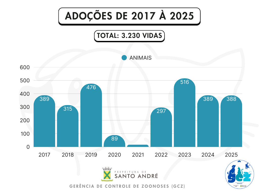 - Neste importante trabalho, sabe-se que de 2017 até o momento foram adotados 3.230 animais, ganhando um lar para viver: