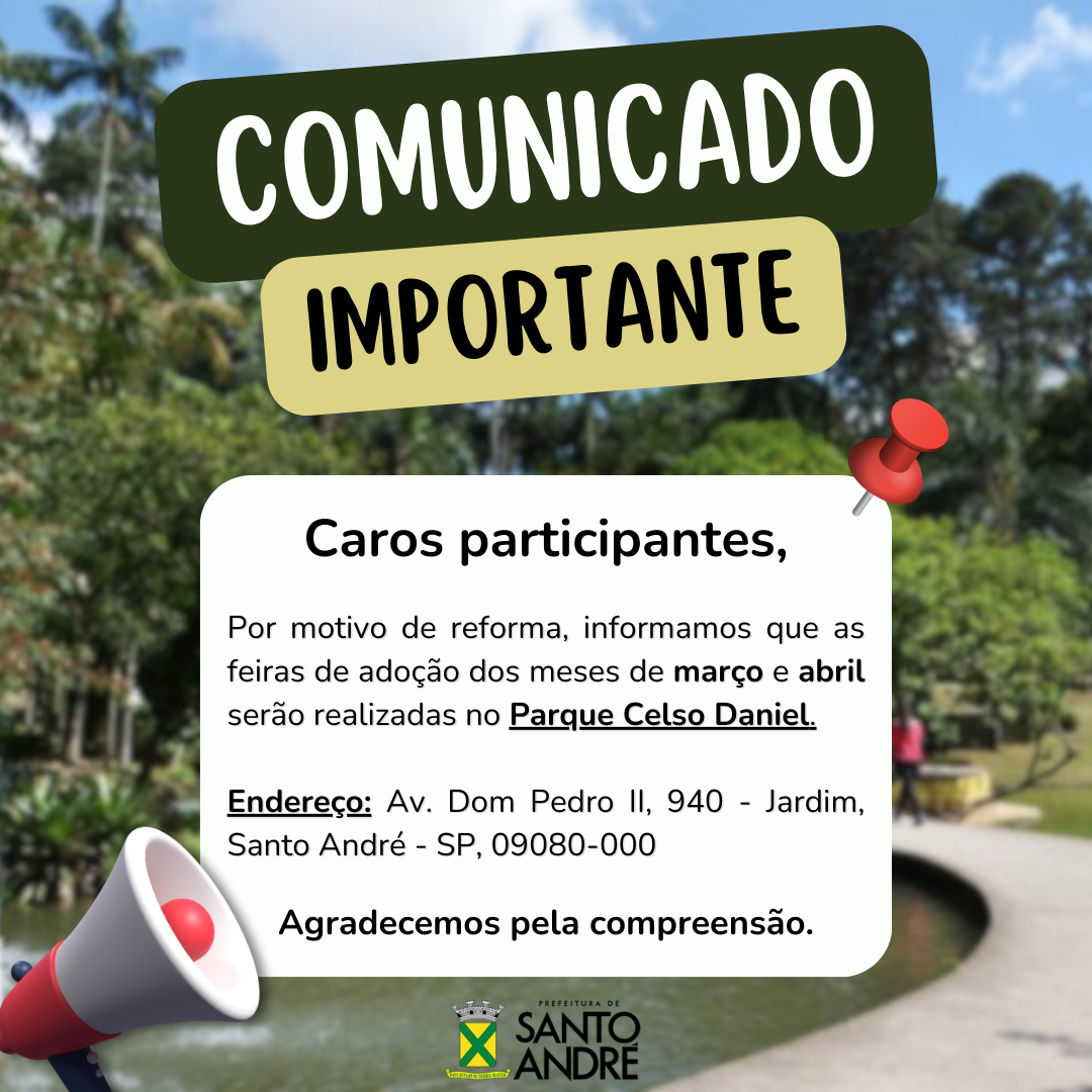 A feira de adoção EU AMO, EU ADOTO do departamento de Gerencia de Controle de Zoonoses ocorre todo último domingo do mês com raras exceções confira o calendário: